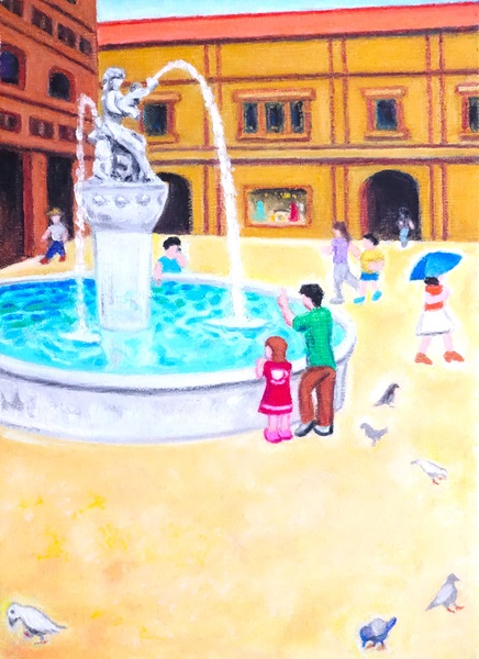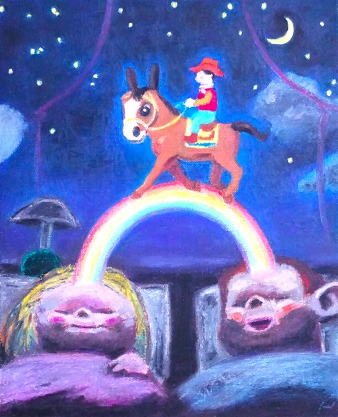 キャンバスにオイルパステル